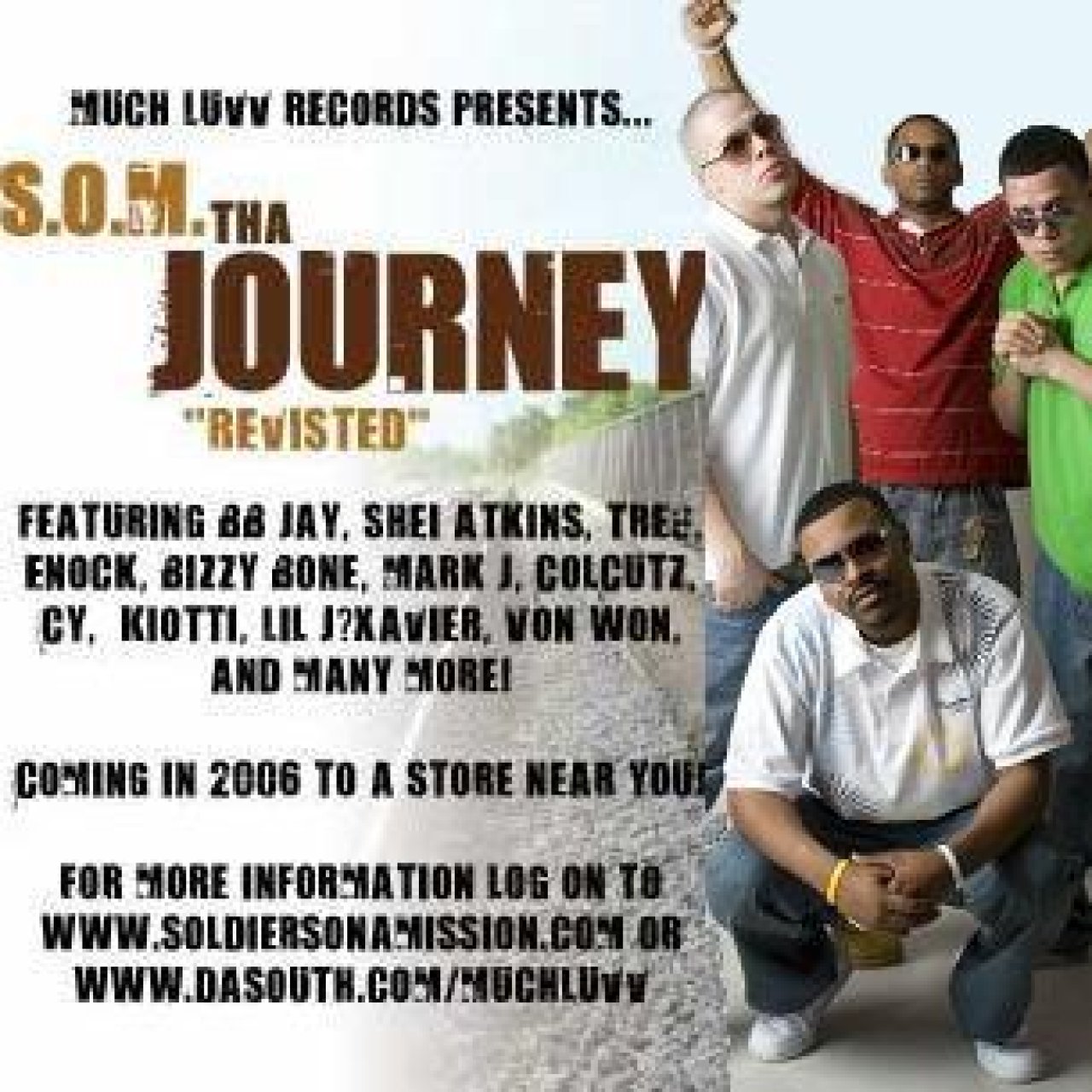 It was the Summer of 2000 when Soldiers On a Mission, hit the scene. The group consists of four young artists and friends originating out of Houston, TX. S.O.M. was originally founded by Jeff Roman (twin) and Raymond Steward (gc). It was only a few months later the group became three, with the addition of Ryan Boyce (boyce), and shortly after Jeff's twin brother, John Roman (bolo), also joined the group.